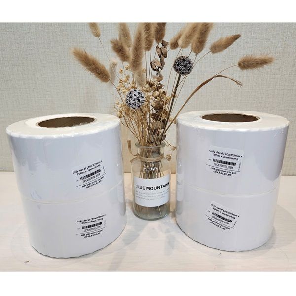 Giấy Decal (40x30)mm x 100m – 2 tem/hàng là dòng tem nhãn thông dụng, được sử dụng rộng rãi trong in ấn mã vạch, tem giá và nhãn sản phẩm. Với chất liệu giấy decal cao cấp có độ bám mực tốt, bề mặt mịn và keo dính chắc chắn, sản phẩm giúp tem in ra rõ nét, không bị nhòe, bong tróc hoặc rách trong quá trình sử dụng.