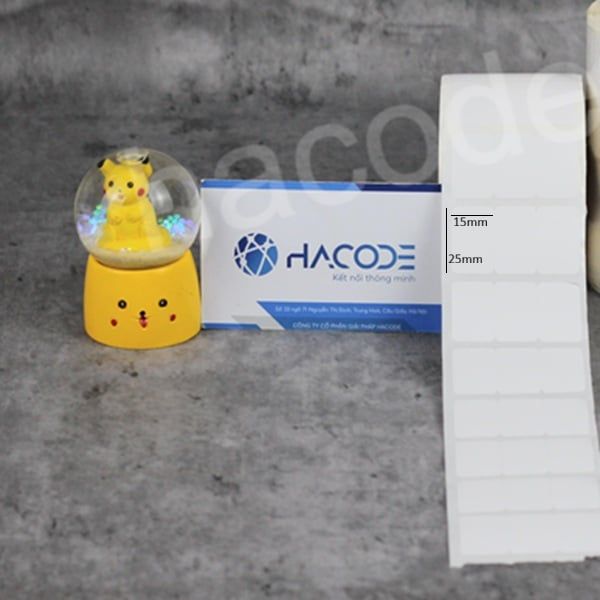 Với kích thước 15x25mm, tem giấy nhỏ gọn, phù hợp cho việc dán trên các sản phẩm mini, hộp nhỏ hoặc nhãn giá, đồng thời đảm bảo bản in rõ nét và dễ đọc. Cuộn decal dài 30 mét, đáp ứng nhu cầu in liên tục tại cửa hàng, siêu thị, kho vận hoặc doanh nghiệp vừa và nhỏ.