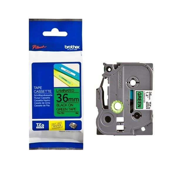 Nhãn in Brother TZE-761 là dòng nhãn đa lớp cao cấp với kích thước 36mm x 8m, thiết kế chữ đen trên nền xanh lá cây nổi bật. Sản phẩm gồm 7 lớp vật liệu với lớp phủ laminate bảo vệ giúp nhãn chống trầy xước, chịu được hóa chất, chống thấm nước và chịu nhiệt độ từ -80°C đến 150°C. Nhãn còn có khả năng chịu tia UV, giúp chữ in không phai mờ trong 1-3 năm, phù hợp sử dụng cả trong nhà và ngoài trời với độ bền cao và độ bám dính tốt trên nhiều loại bề mặt, kể cả bề mặt cong và phức tạp.