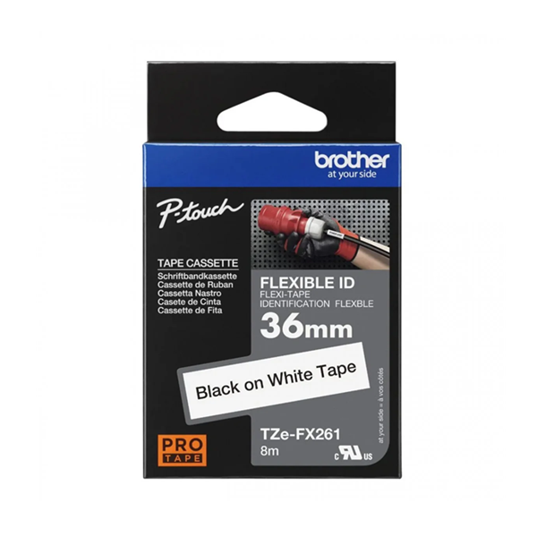 Nhãn in Brother TZE-FX261 là loại nhãn đa lớp siêu dẻo có kích thước rộng 36mm và chiều dài 8m, thiết kế chữ đen trên nền trắng với độ tương phản cao giúp dễ đọc và nhận diện thông tin. Sản phẩm được cấu tạo gồm 7 lớp vật liệu với màng laminate phủ bề mặt, nhãn này có khả năng chống trầy xước, chịu được hóa chất, chống thấm nước và chịu được nhiệt độ từ -80°C đến 200°C. Nhãn còn có khả năng chống chịu tia UV, giúp chữ in không bị phai màu trong thời gian 1-3 năm, thích hợp sử dụng trong cả môi trường trong nhà và ngoài trời.