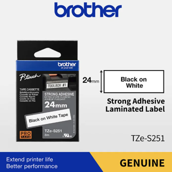 Nhãn in Brother TZE-S251 là giải pháp tối ưu cho việc ghi nhãn trên các bề mặt khó, đảm bảo độ bám dính và độ bền cao, giúp quá trình quản lý và nhận diện tài sản trở nên dễ dàng và chuyên nghiệp hơn.