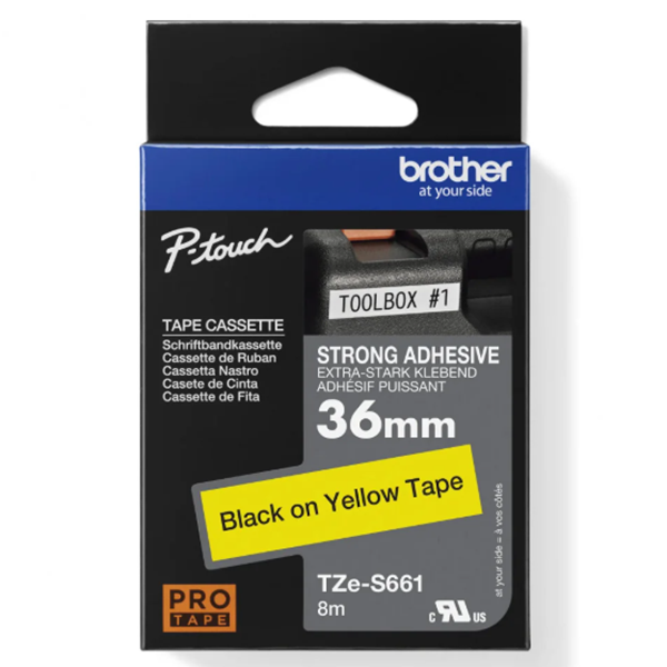 Nhãn in Brother TZE-S661 là loại nhãn đa lớp siêu dính được thiết kế để bám chắc trên các bề mặt khó dán như bề mặt sơn, nhựa nhám hoặc kim loại trong môi trường khắc nghiệt. Sản phẩm có nền vàng nổi bật với chữ đen sắc nét, giúp dễ dàng nhận diện và phân loại, đồng thời cấu tạo gồm 7 lớp với màng phủ laminate bảo vệ bảo đảm nhãn chống trầy xước, chịu được nước, chịu hóa chất, ánh sáng mặt trời và chịu nhiệt độ từ -80°C đến 150°C. Đây là dòng nhãn bền bỉ sử dụng được cả trong nhà và ngoài trời.